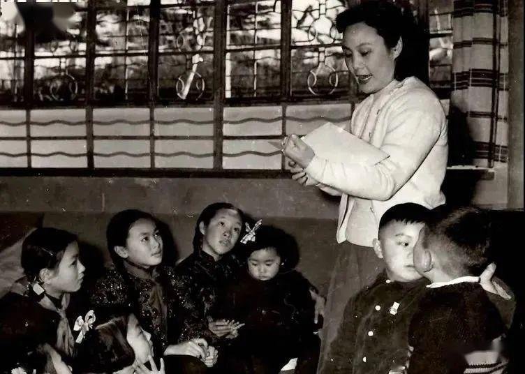 20世纪50年代,白杨在家给子女和小朋友们讲故事