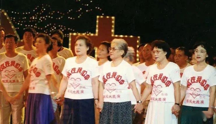 1991年,白杨与张瑞芳、秦怡、王丹凤、桑弧、赵焕章、赵静等参加赈灾大义演。