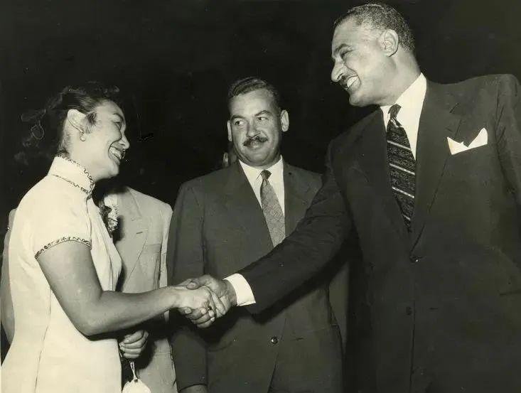 1957年,埃及总统纳赛尔在开罗举办的中国电影节开幕式上会见白杨