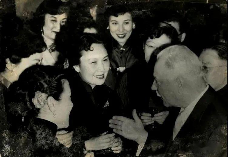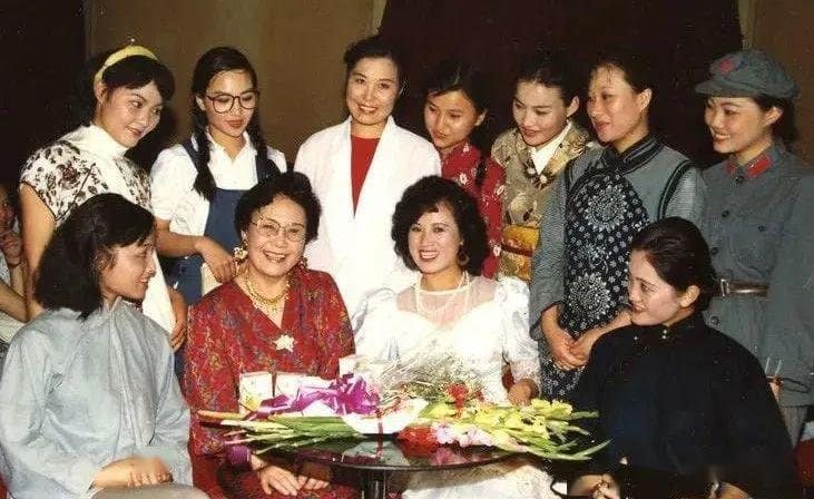 1954年,白杨与田华、梅兰芳、周信芳、袁雪芬、王昆、程砚秋、常香玉、徐肖冰在一起
