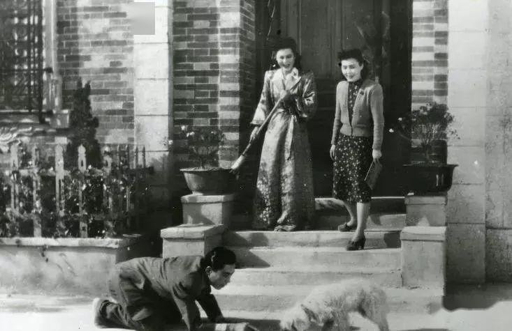 20世纪60年代,白杨一家人在上海市华山路“小白楼”门前留影