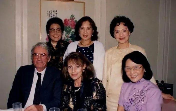 1987年,白杨会见美国格里高列·派克夫妇,王丹凤、秦怡、张瑞芳在座