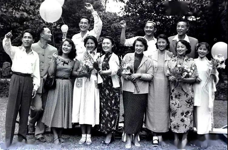1954年,白杨与部分上影剧团演员 (冯奇、孙道临、金焰、秦怡、黄宗英、魏鹤龄、王丹凤、王蓓等)在一起