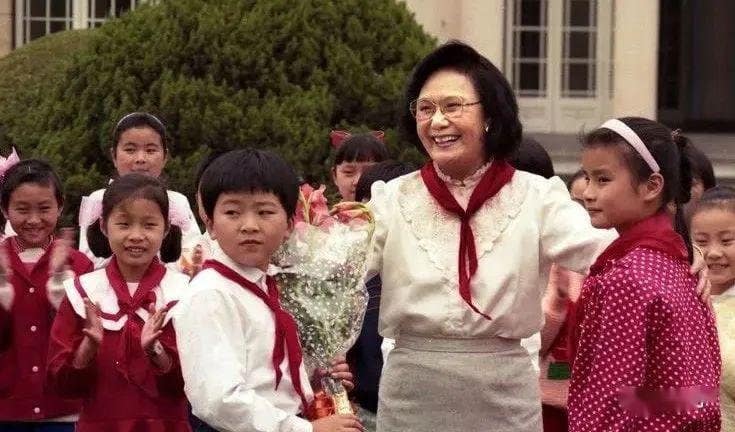 1990年,在中福会少年宫,白杨与少先队员们在一起